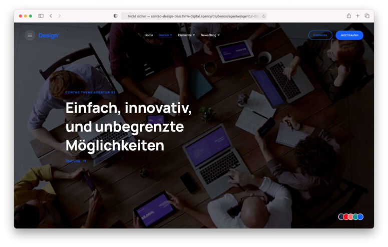 Mit Contao als intuitiver Basis ermöglicht das Theme verschiedenste Anforderungen mit Leichtigkeit und ohne Programmierkenntnisse umzusetzen. Aus einem Set von über 100 aufeinander abgestimmten Elementen können innovative Onepager oder umfangreiche Business Websites im Handumdrehen erstellt werden. Hunderte Kunden haben team4data bereits erfolgreich im Einsatz. Nutzen auch Sie jetzt die Vorteile von team4data.