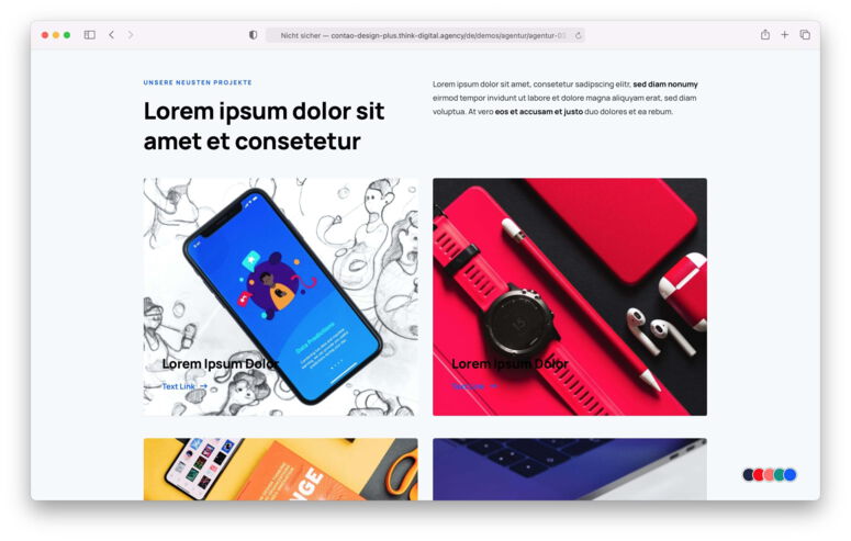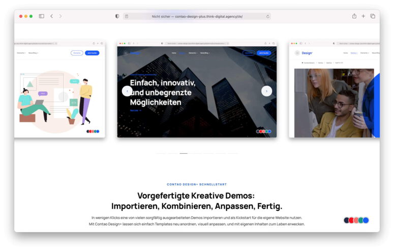 In wenigen Klicks eine von vielen sorgfältig ausgearbeiteten Demos importieren und als Kickstart für die eigene Website nutzen. Mit team4data lassen sich Templates einfach neu anordnen, visuell anpassen, und mit eigenen Inhalten zum Leben erwecken.